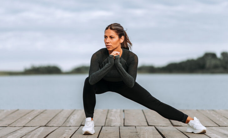 She offers simple weightless swaps such as sumo squats instead of regular squats and backward lunges instead of forward lunges.